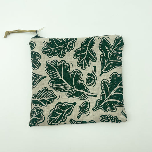 Green Hand Printed Linen Oak Leaf Bag